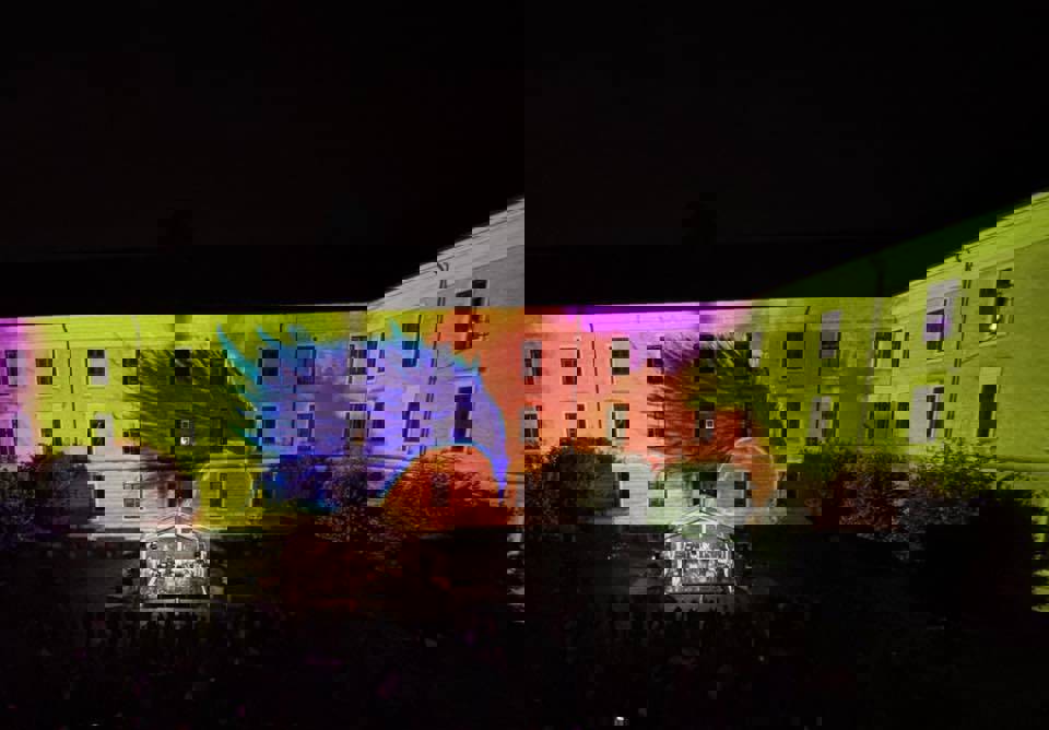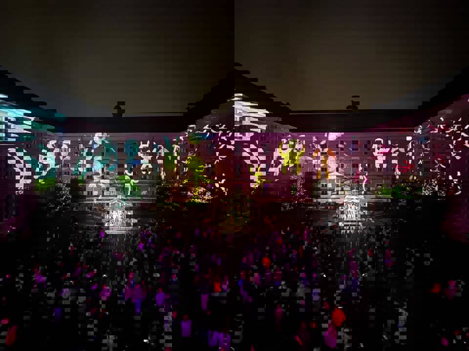 Viborg Katedralskoles elever skabte magi under åben himmel med forestillingen "Himmel og jord". En kreativ aften, hvor unge talenter forenede musik og billeder under Viborg Animation Festival.