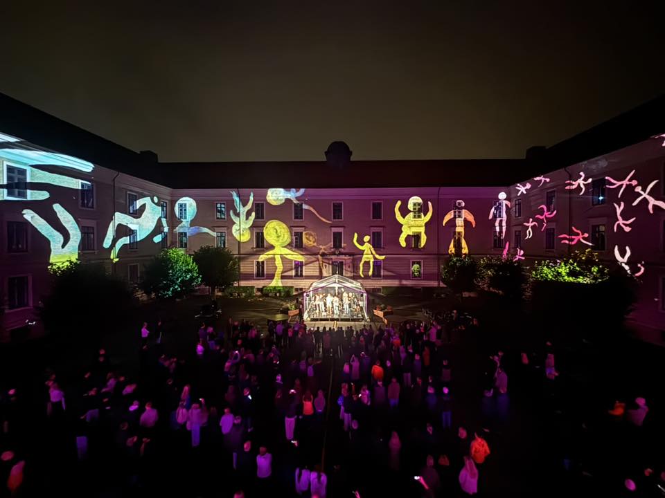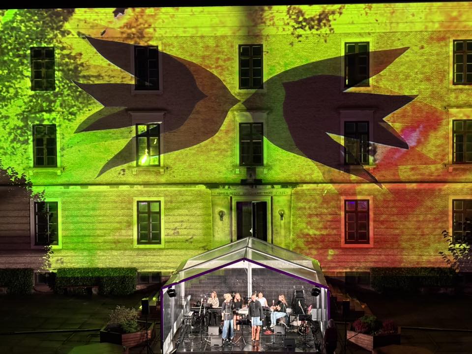 Viborg Katedralskoles elever skabte magi under åben himmel med forestillingen "Himmel og jord". En kreativ aften, hvor unge talenter forenede musik og billeder under Viborg Animation Festival.