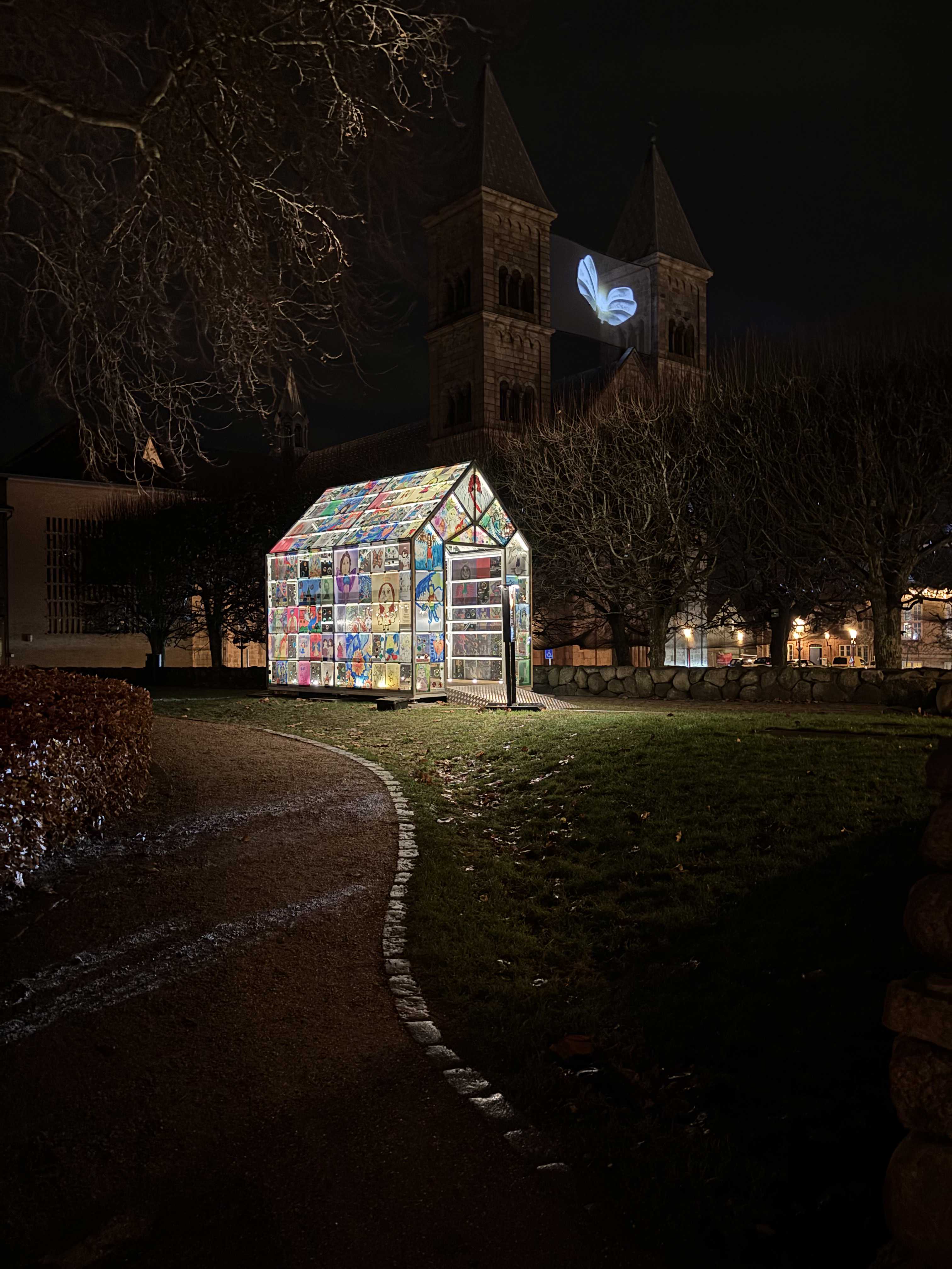 Glasportalen på Margretheplænen samler børn og unges håbefulde tegninger fra hele verden i en unik engleportal – skabt i Viborg gennem internationalt og lokalt samarbejde.