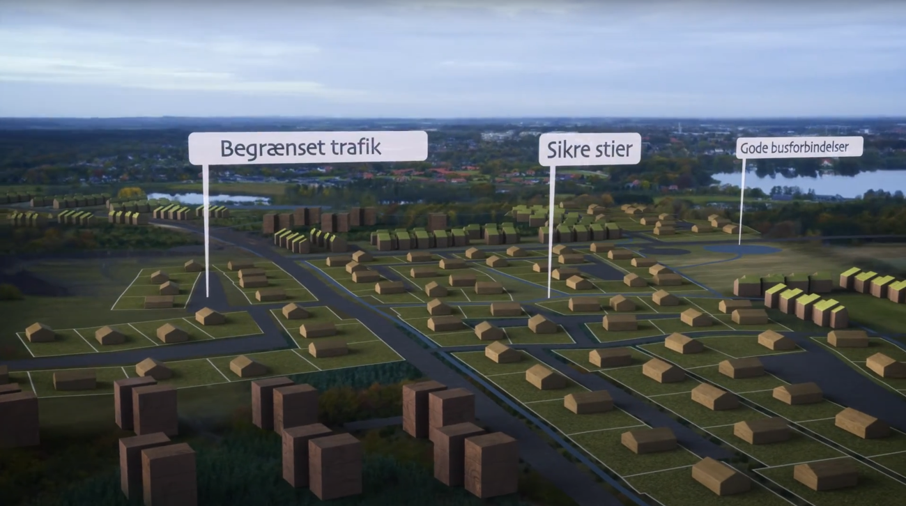 En kombination af realfilm og animation bringer endnu ikke byggede huse til live i det eksisterende landskab, og gør det lettere at forestille sig livet i et nyt boligområde.