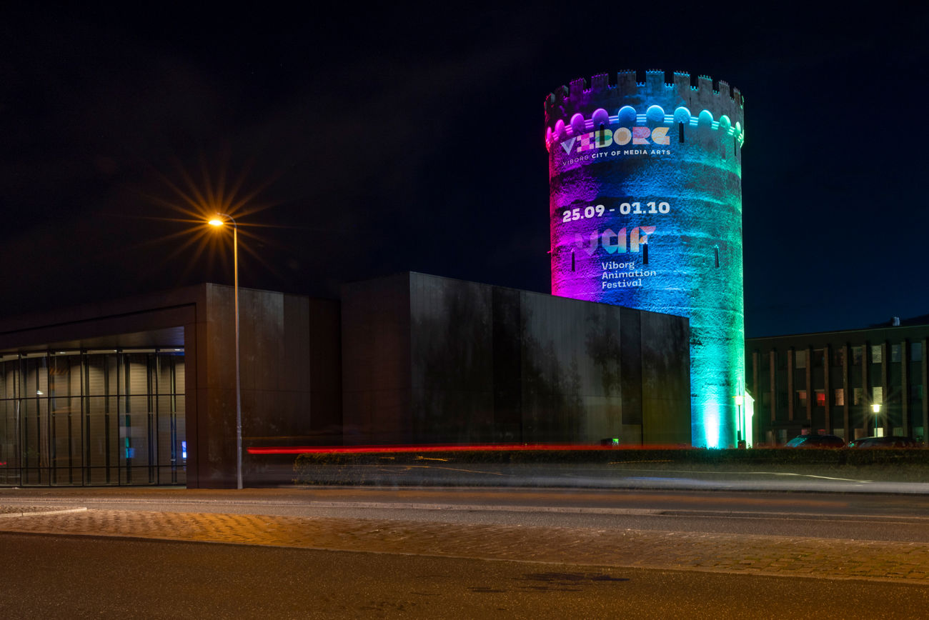 Viborgs ikoniske 23 meter høje vandtårn fra 1927 på Skottenborg har i flere år været et ikon for Viborg Animation Festival, når det indhylles i farver og former udenpå. Tårnet er lyst op udefra, mens festivalen står på.