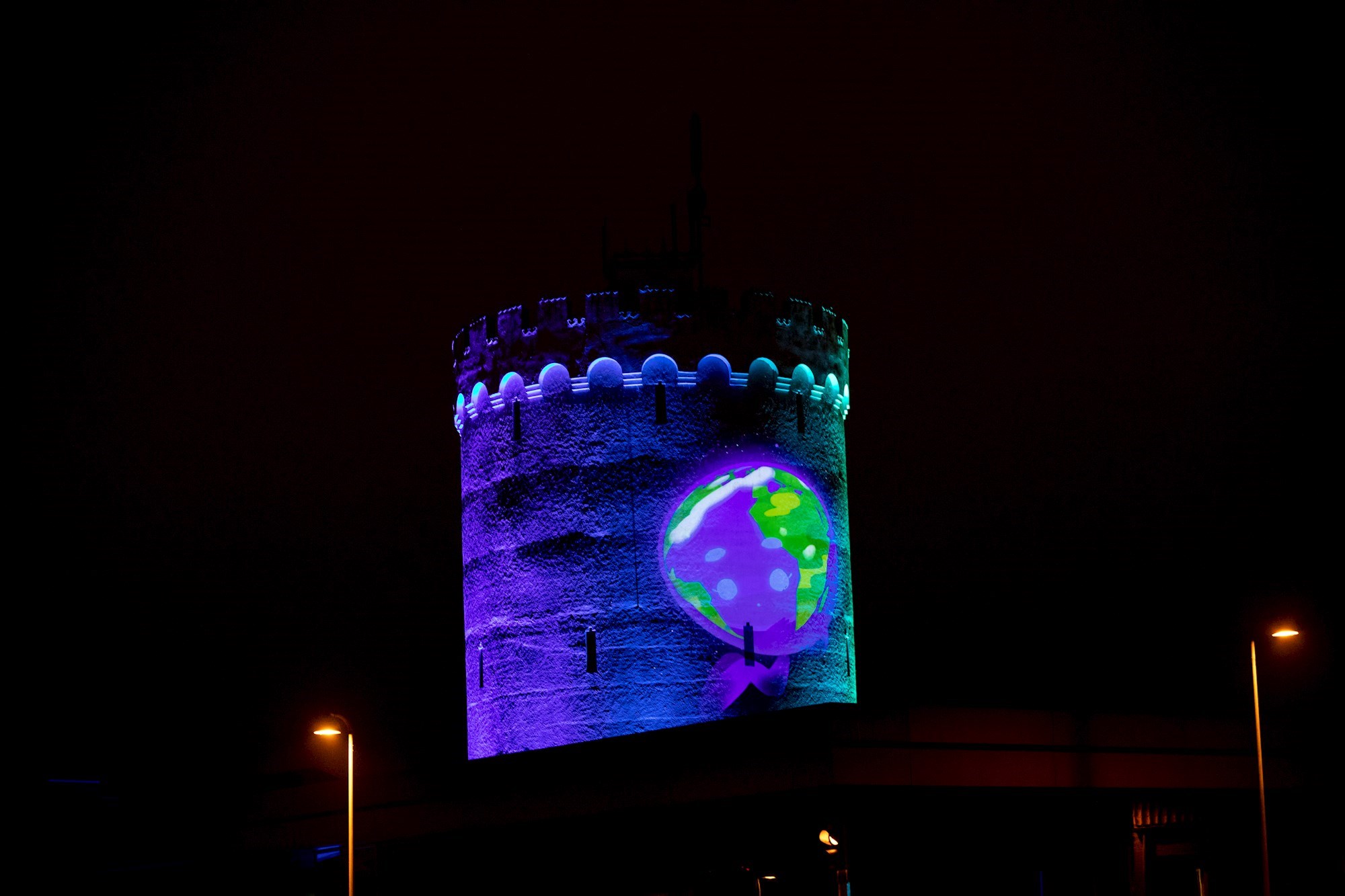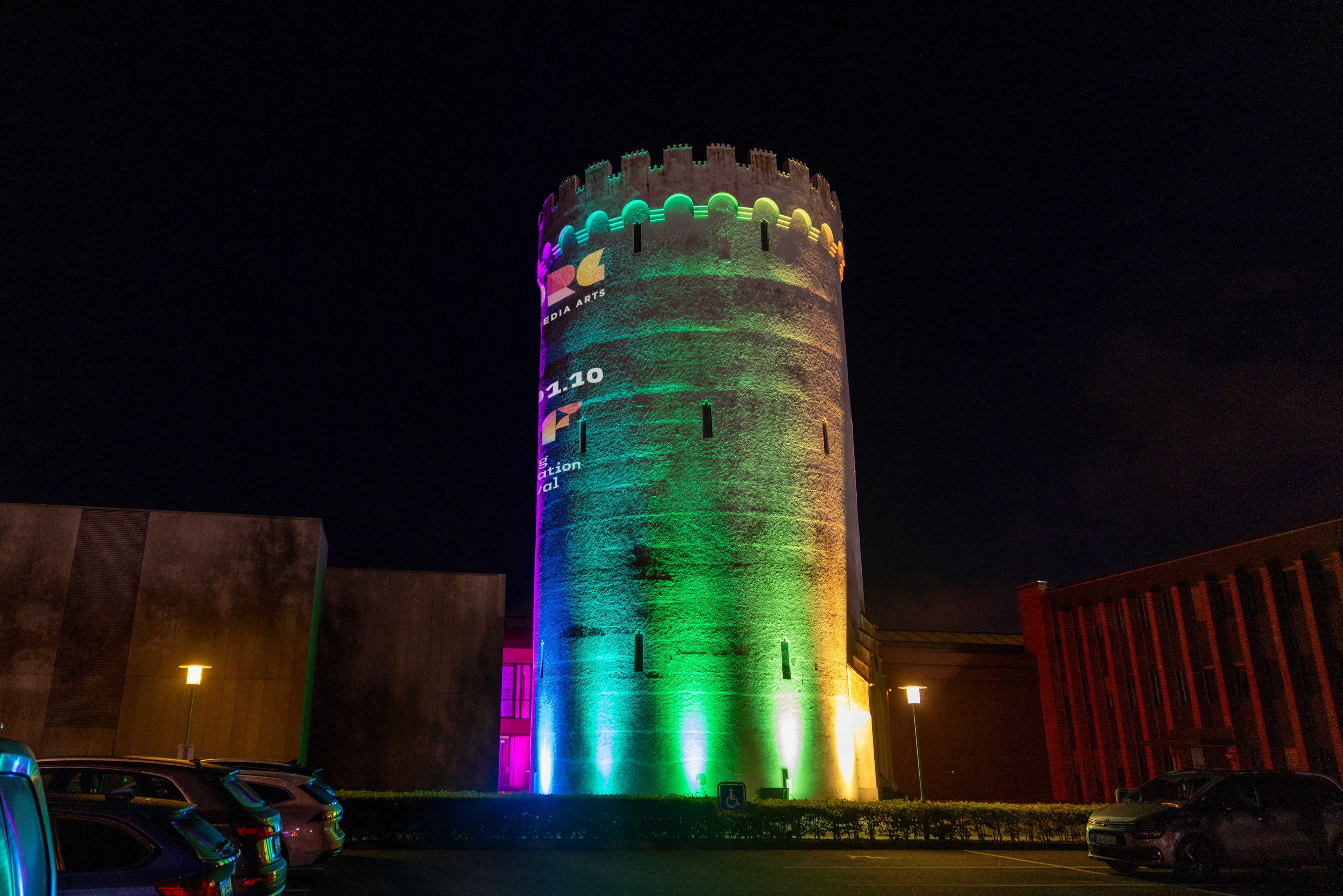 Viborgs ikoniske vandtårn på Skottenborg lyser hvert år op under Viborg Animation Festival – med farver, former og kunstneriske installationer på facaden.