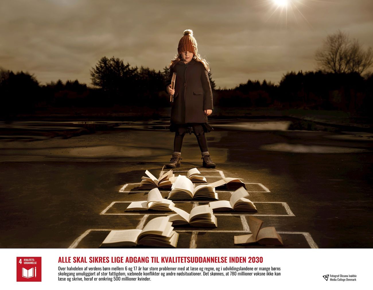 Fotografelever fra Media College Denmark har hver især lavet et spektakulært foto, der formidler et verdensmål. De 17 fotos blev til udstillingen Vi og verdensmålene, som hver især satte gang i tanker, følelser og spørgsmål omkring verdensmålene.