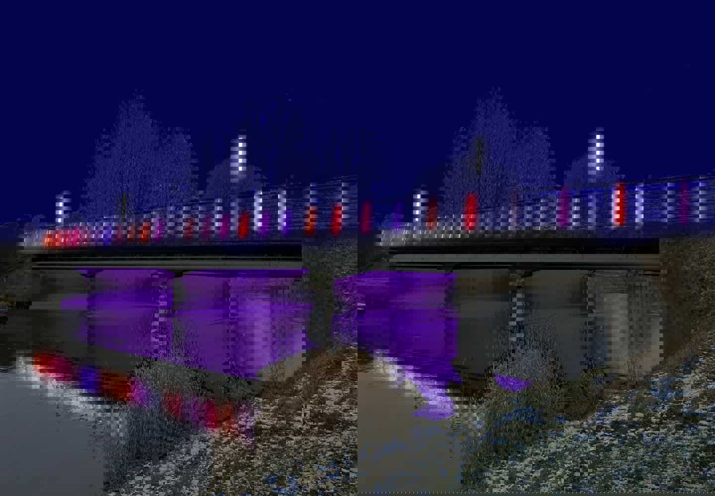 - Lysinstallation Strøm – ’en hyldest til Gudenåen’ i Bjerringbro af kunstneren Signe Klejs.