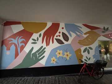 - udsmykning af væg ved Rafiki Chokolade i Viborg