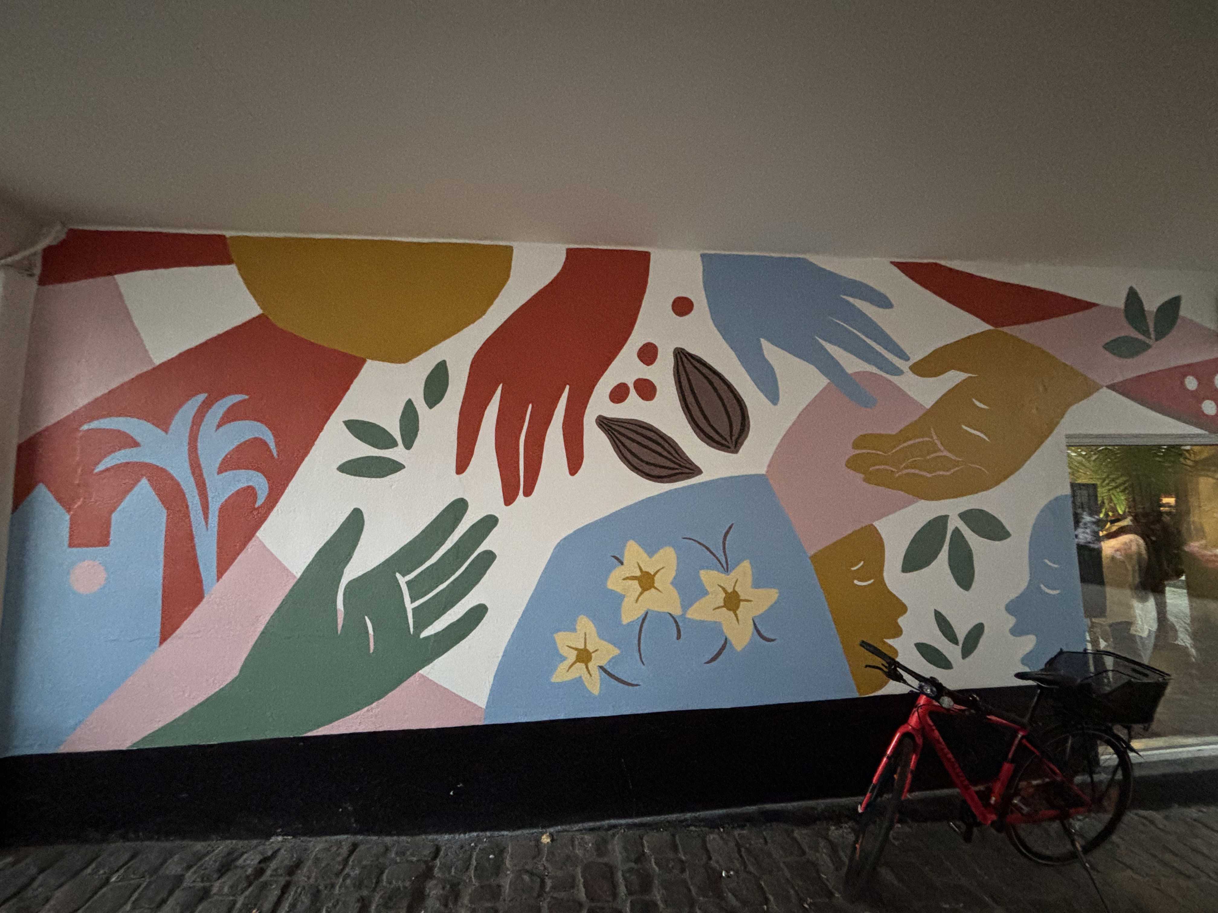 På væggen hos Rafiki Chokolade i Viborg fortæller et nyt kunstværk historien om caféens sociale arbejde i Uganda – og ønsket om at gøre en forskel for lokale kakaobønder.