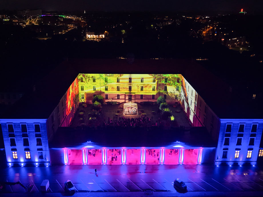 Kim Larsens 80-års fødselsdag blev fejret med musik, lys og levende billeder på Viborg Katedralskoles mure. En stemningsfuld oplevelse, hvor Gorm Bull og Kolja Pedersen vækkede minderne til live.