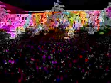 Viborg Katedralskoles elever skabte magi under åben himmel med forestillingen "Himmel og jord". En kreativ aften, hvor unge talenter forenede musik og billeder under Viborg Animation Festival.