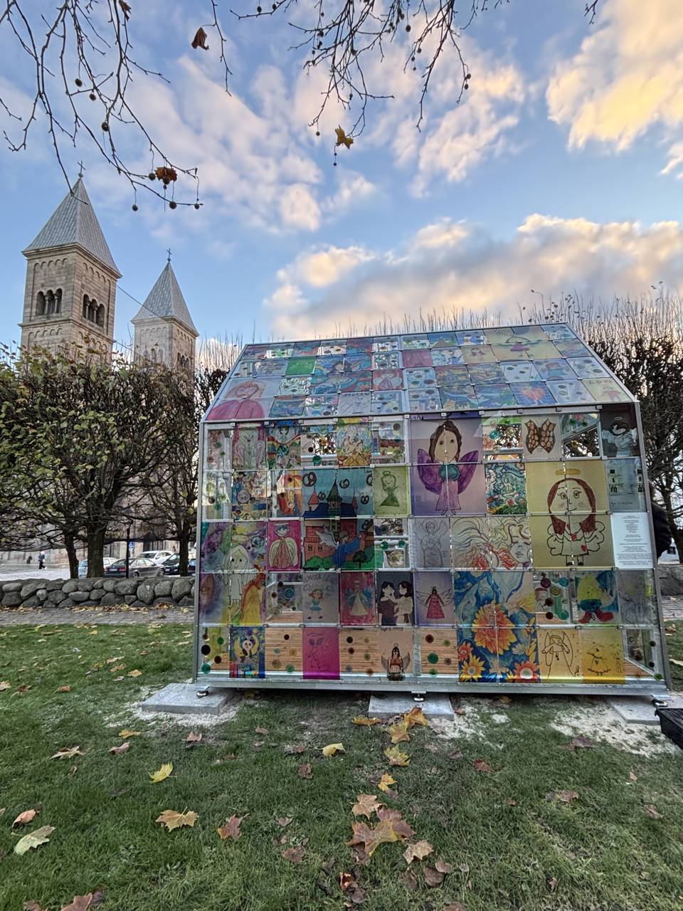 Glasportalen på Margretheplænen samler børn og unges håbefulde tegninger fra hele verden i en unik engleportal – skabt i Viborg gennem internationalt og lokalt samarbejde.