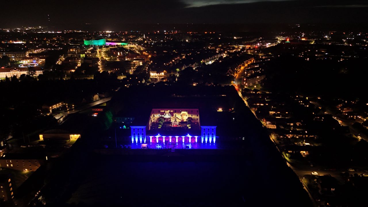 Kim Larsens 80-års fødselsdag blev fejret med musik, lys og levende billeder på Viborg Katedralskoles mure. En stemningsfuld oplevelse, hvor Gorm Bull og Kolja Pedersen vækkede minderne til live.
